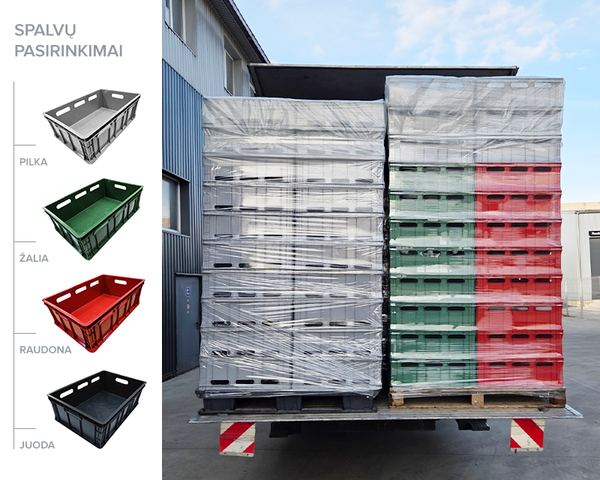 Papildoma informacija: Spalvų pasirinkimas individualiems užsakymams. Plastikinių dėžių sienos ir dugnas uždari, papildomai sutvirtinti kampai siekiant padidinti gaminio tvirtumą.
