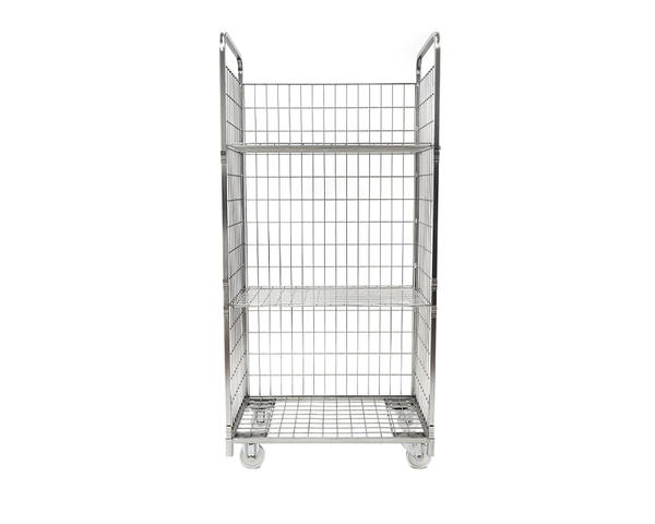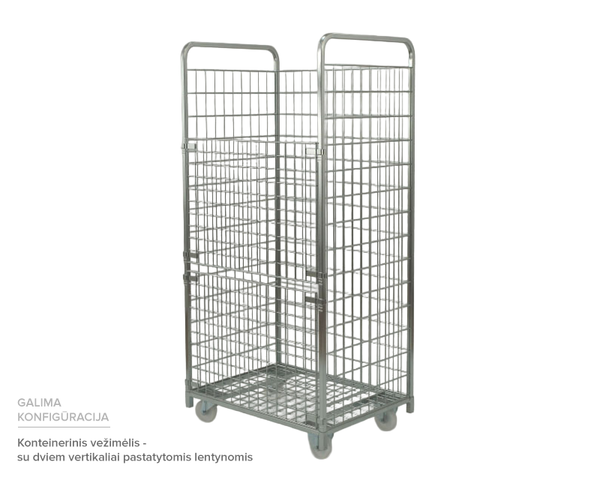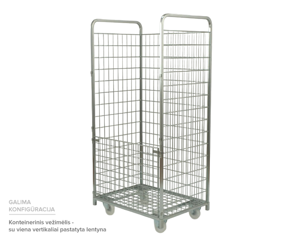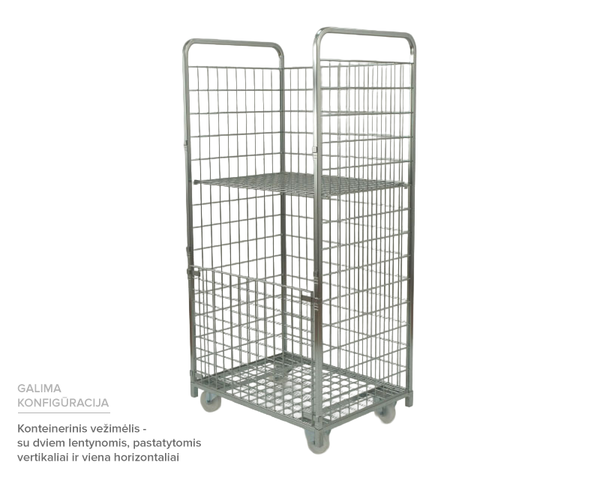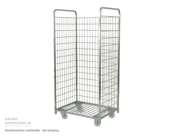 Tinklinis konteinerinis vežimėlis – tvirtas, universalus ir patogus sprendimas prekių transportavimui bei laikymui įvairiose darbo aplinkose. Šis konteinerinis vežimėlis pasižymi tvirta cinkuoto plieno konstrukcija, atsparia korozijai ir intensyviam naudojimui. Dvi horizontalios lentynos užtikrina patogų prekių išdėstymą ir gerą matomumą, o šoninės tinklinės sienelės apsaugo krovinį nuo iškritimo.